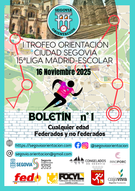 Visualiza o descarga el boletín 1 del I Trofeo de orientación Ciudad de Segovia que se celebra el domingo 16 de noviembre de 2025.